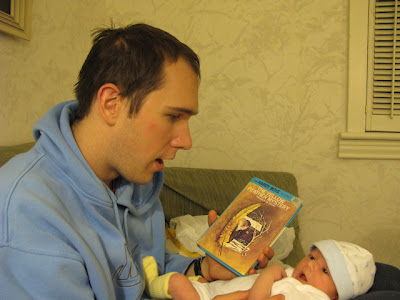 Edmund getting his first birthday present from Mom & Dad (although you'd think the labour/birth should count as a present in itself!).....a Hardy Boys book!